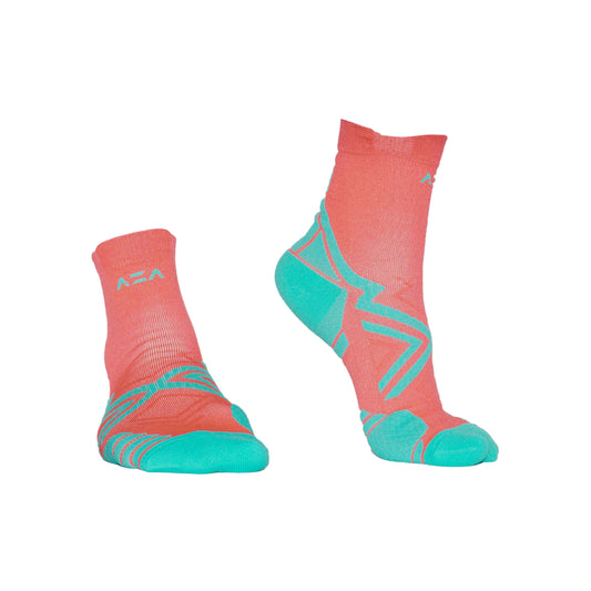 AZA Ignite II Quarter Socks - Coral Lime Purple